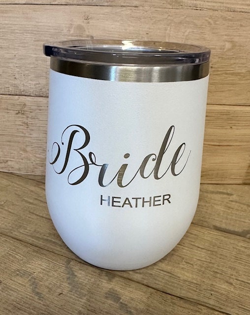 Bridal Wedding Wine Tumbler - Laser Engraved - Personalized