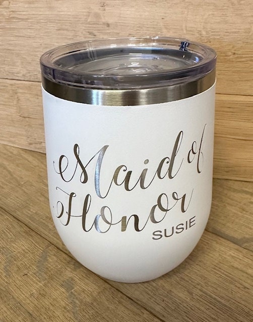 Looking for a fun and unique way to celebrate your wedding day? Our custom Bridal Wedding Wine Tumbler is the perfect keepsake! Personalize it with your own special text to create a lasting memory of your big day.